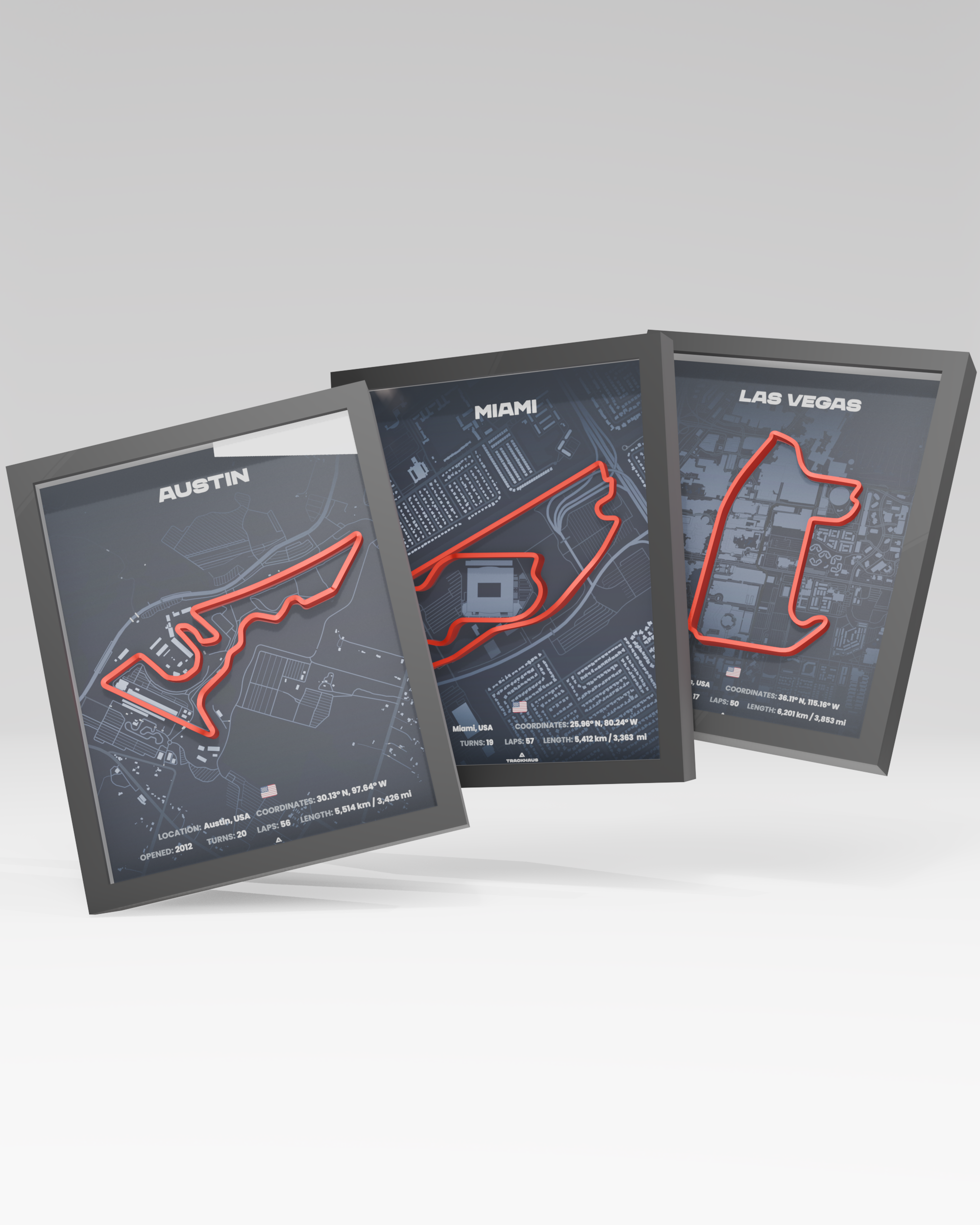 Precision 3D printing brings every apex, chicane, and elevation change to life, crafting a stunning 3D centerpiece that turns any wall into a tribute to speed, engineering, and storied history.